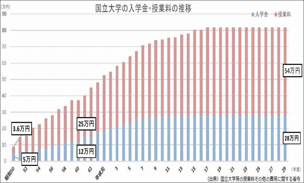 ¡¡¹ñΩÂç³Ø¤Î¼ø¶ÈÎÁ¤Ï¡¢¾¼ÏÂ50ǯÅÙ¤Ë3.6Ëü±ß¤Ç¤·¤¿¡£¾¼ÏÂ60ǯÅÙ¤Ë25Ëü±ß¡£¸½ºß¤Ï54Ëü±ß¤Ç¤¹¡£